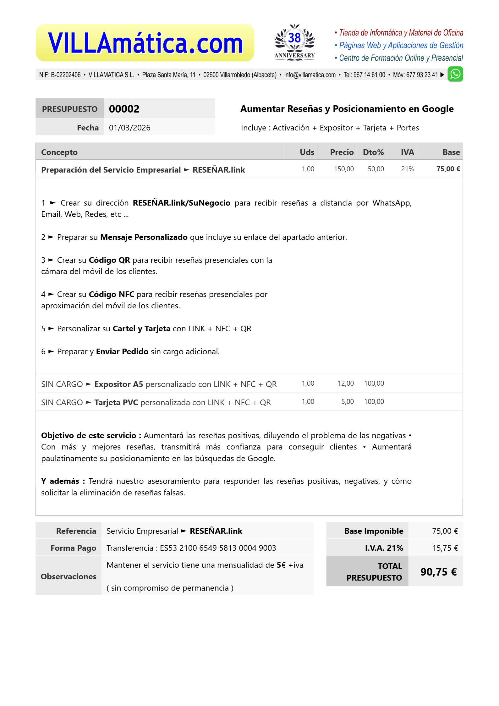 Si está satisfech@ con el servicio prestado, por favor, pónganos una buena reseña, es muy fácil y rápido pulsando en el siguiente enlace ...